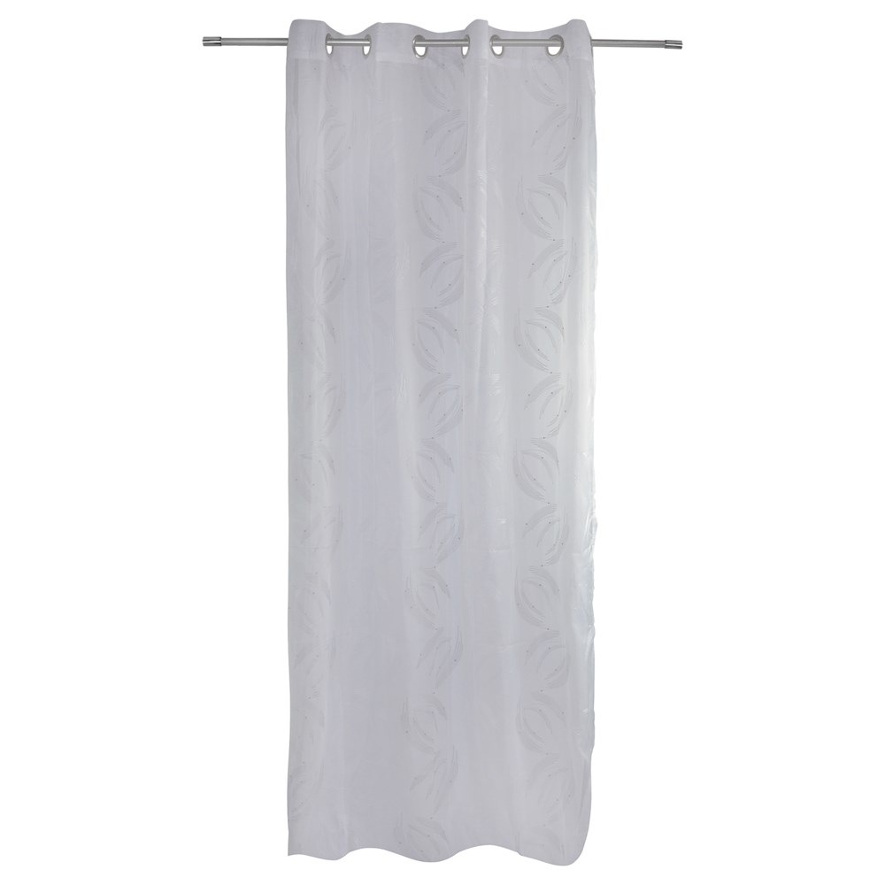 Perde me unaza, poliestër, e bardhë, 140x260 cm