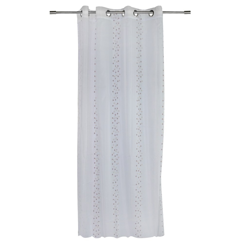 Perde me unaza, poliestër, e bardhë-bezhë, 140x260 cm
