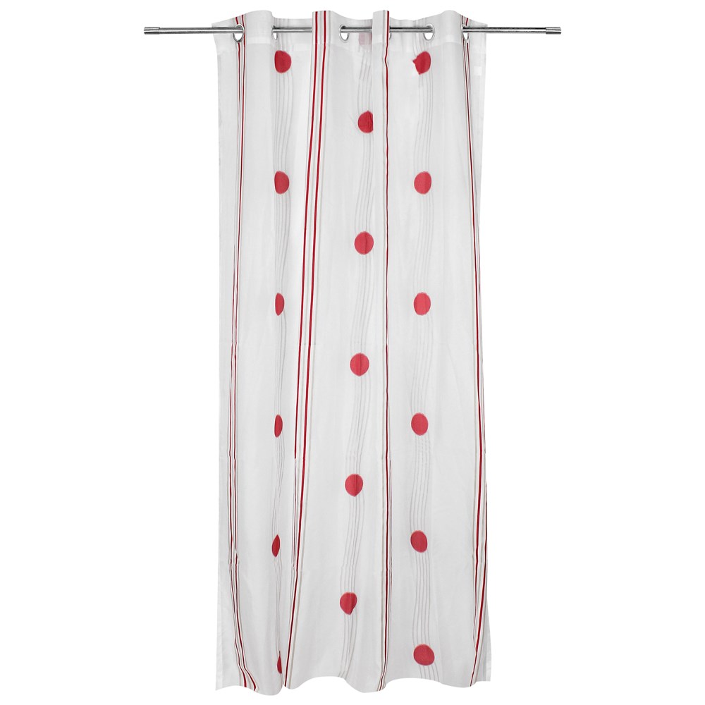 Perde me unaza, poliestër, e bardhë-e kuqe, 150x260 cm