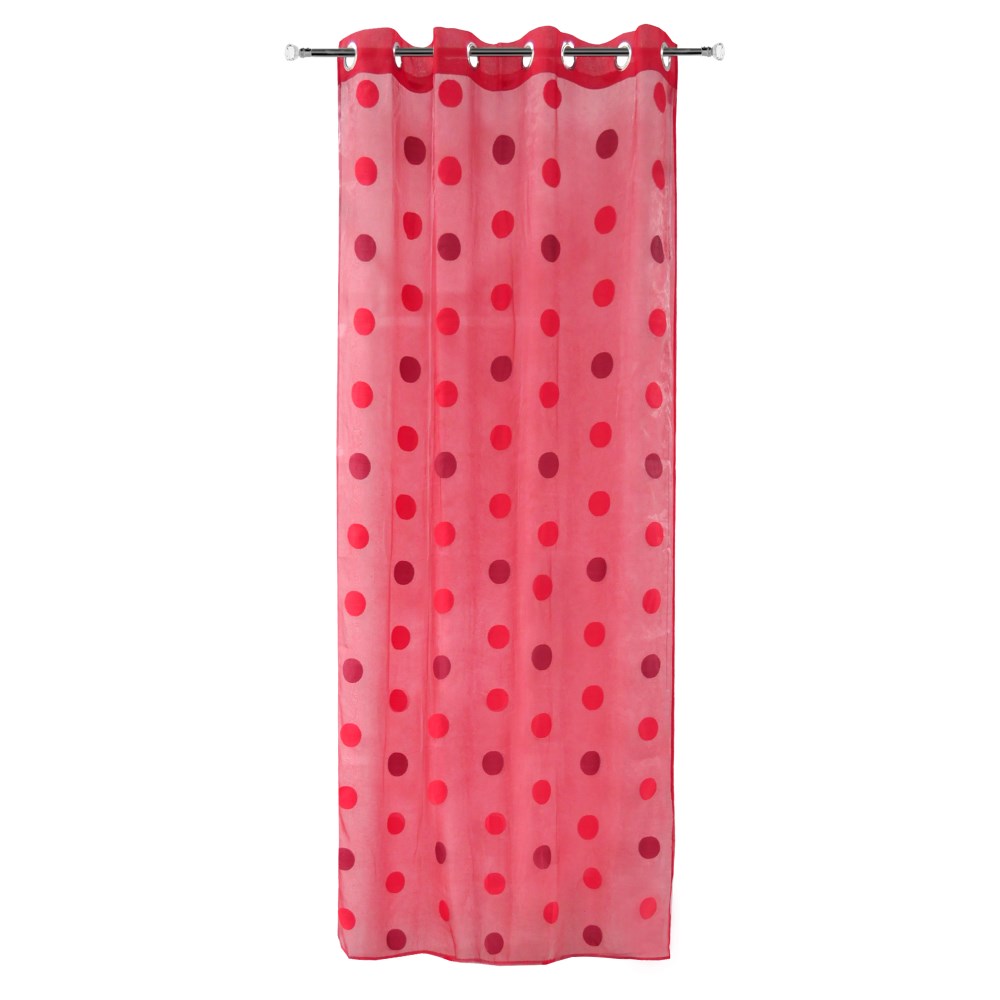 Perdja është një element përbërës , mbrojtës, që integron ose ndan hapsirën e jashtme nga intimiteti i ambjenteve të brendshme. Rrudhat elegante të krijuara nga valëzimi i materialit të derdhur të copës, të ndërthurura me ngjyrën dhe me transparencën e saj, shtojnë stil, harmoni ngjyrash, dritë-hije në ambjentet tuaja. Jepini ambjenteve tuaja një identitet të ri me perden ngjyrë te kuqe me motive rrathesh te kuq e vishnje, të përberë nga fijet e poliestrës që i jep këtij produkti një shkëlqim të mëndafshtë të konturuar në dritaren tuaj duke u kombinuar lehtesisht me ambjente klasike dhe bashkëkohore me ngjyra te kuqe, te bardhë , gri dhe vishnje.