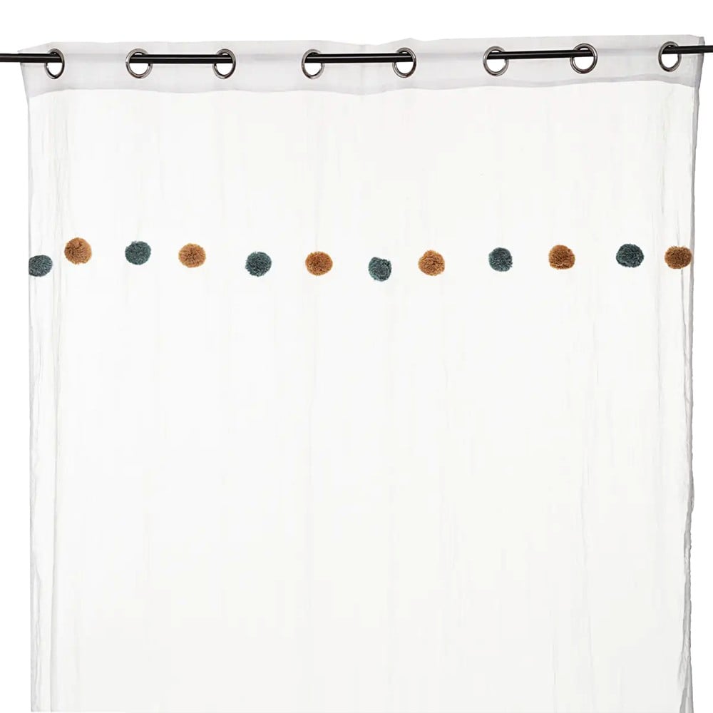 Perde e hollë me dekore pompom për fëmijë, me materjal poliestër. Cilësi shumë e mirë dhe dizajn i thjeshtë. Mundet të përdoret si perde e dytë duke e kombinuar me një perde të trashë ose duke e përdorur si perde të vetme. Perdja është shumë e thjeshtë në vendosje dhe mundet ta hiqni kollaj për ta larë në lavatriçe.