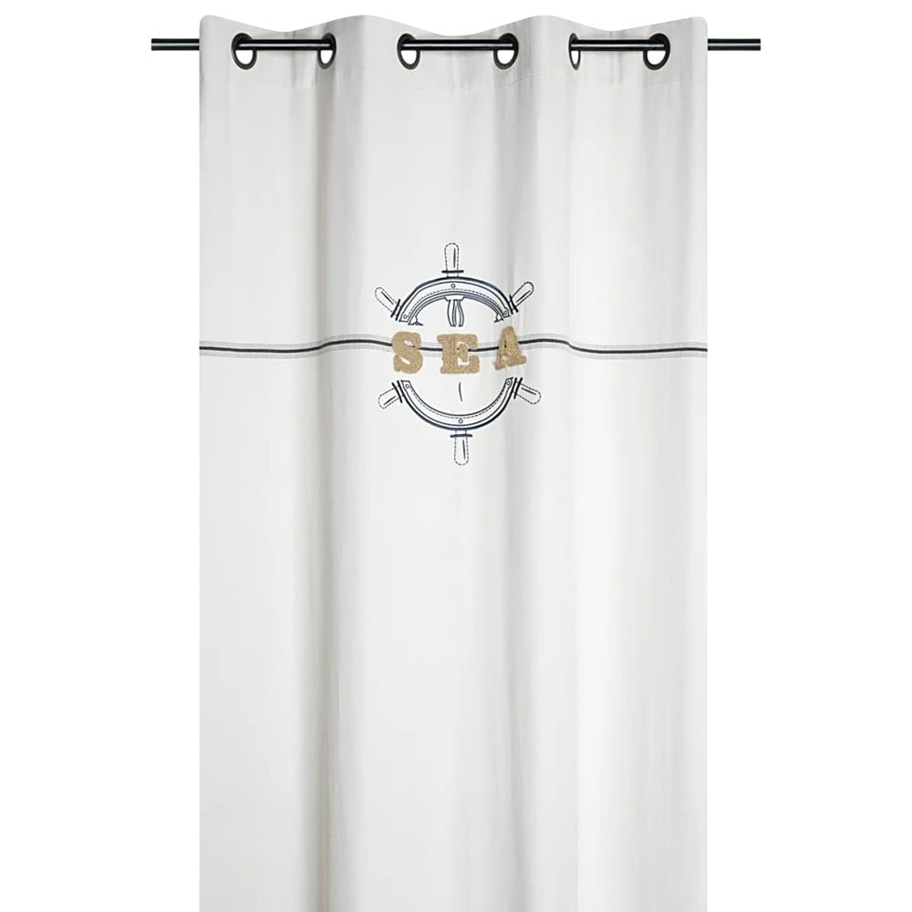 Maritime full curtain with rings, 100% cotton, off-white, 140x260 cm