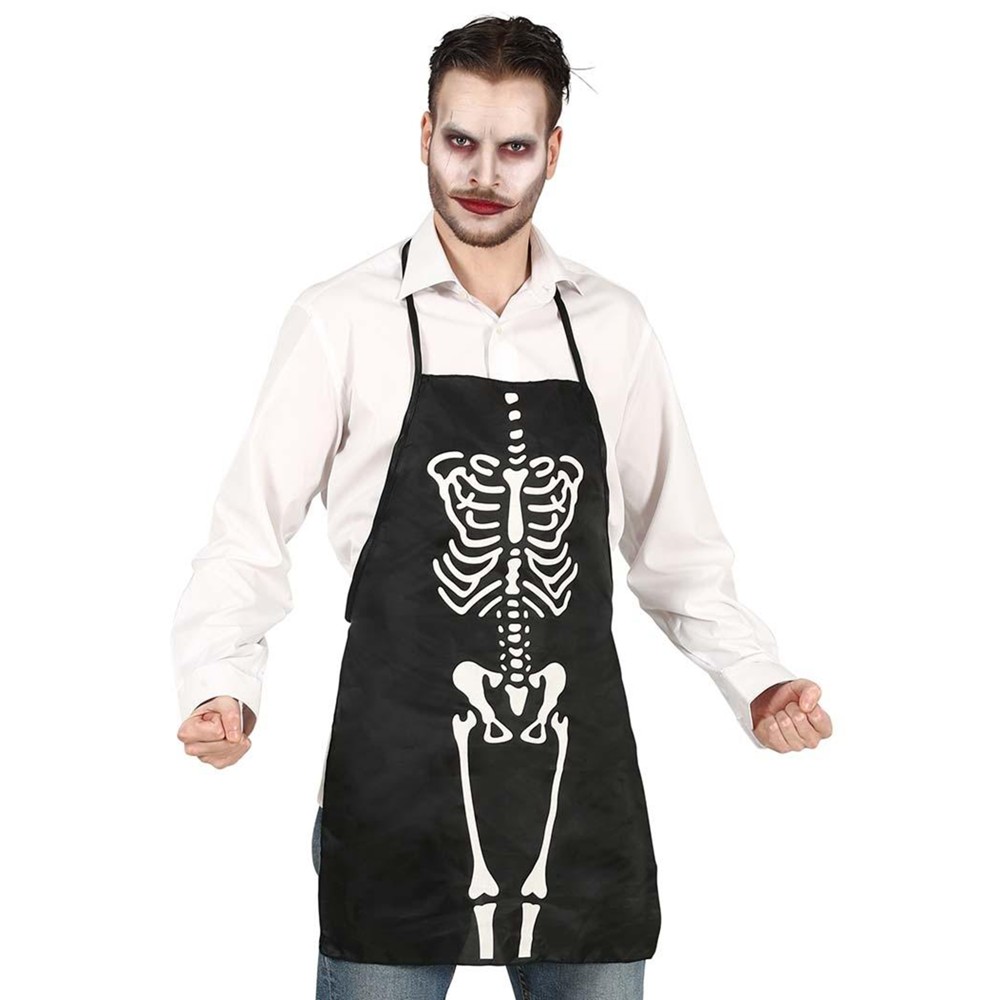 Përparëse me figurë skeleton, në ngjyë të zezë. Ideale për festën e halloween.