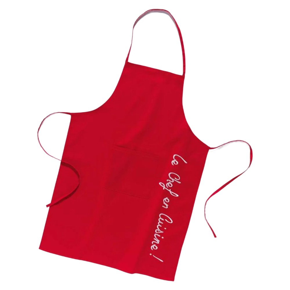 Përparëse kuzhine me xhep Cuistot me përmasë 60 x 84 cm. Përparësja është e përbërë nga material 100% pambuk. Vjen në dizenjo në ngjyrë të kuqe, ku mund të kombinohet dhe me aksesorë të tjerë të të njëjtës linjë (nuk përfshihen).