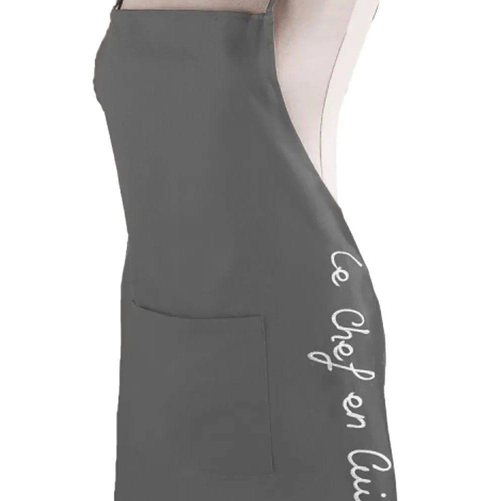 Përparëse kuzhine me xhep Cuistot me përmasë 60 x 84 cm. Përparësja është e përbërë nga material 100% pambuk. Vjen në dizenjo në ngjyrë gri, ku mund të kombinohet dhe me aksesorë të tjerë të të njëjtës linjë (nuk përfshihen).