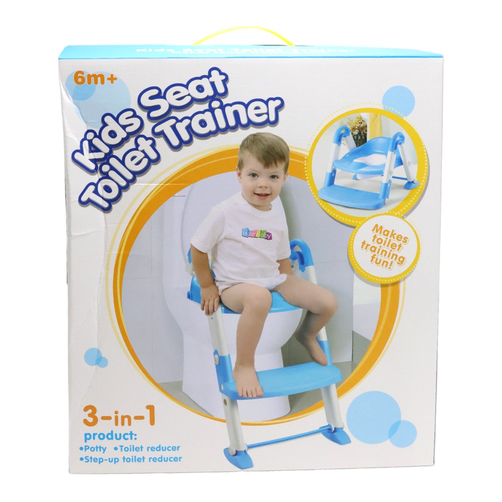 Pershtatësi tualeti është i bërë nga plastika dhe ka një dizajn funksional. Ai ka një shkallë të integruar që e bën të mundur që fëmijët të arrijnë më lehtë në tualet. Madhësia e tij është rreth 21x38x42 cm, duke e bërë të përshtatshëm për fëmijë të vegjël. Ky pershtatës tualeti ndihmon fëmijët të mësojnë vetë të përdorin tualetin, duke i ofruar një ambient të sigurt dhe të këndshëm për këtë proces të rëndësishëm në zhvillimin e tyre. Vjen në ngjyrë blu ose rozë.