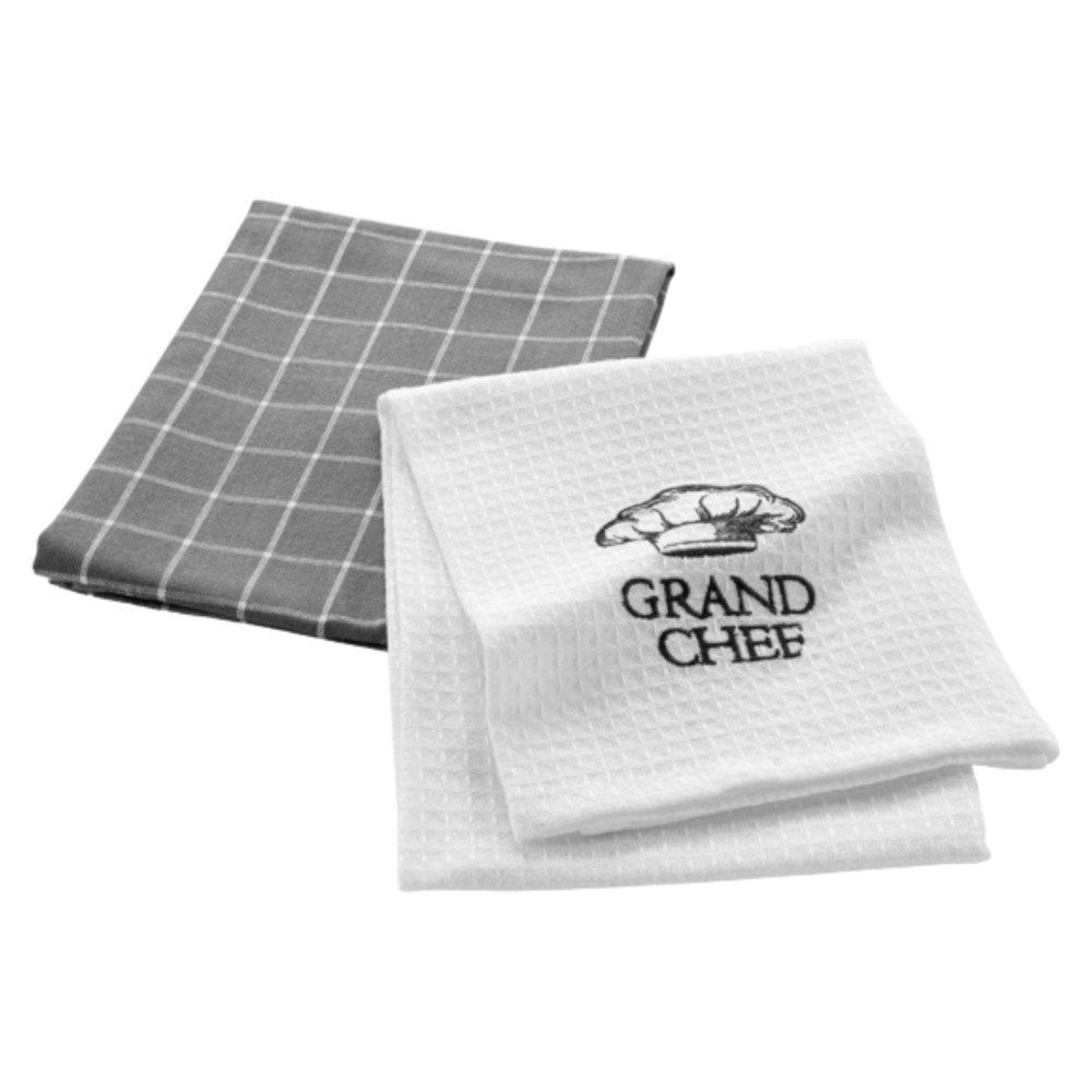 Peshqirat e kuzhinës në ngjyrat gri dhe të bardhë sjellin një prekje të ngrohtë dhe të stilizuar në ambientin tuaj të kuzhinës. Me përmasat 50x70 cm, ato ofrojnë një zgjidhje të shkëlqyer për të pastruar dhe për të tharë enët dhe sipërfaqet e punës. Bërë nga material pambuku, këto peshqira janë të buta dhe të absorbueshme, duke siguruar një përdorim të lehtë dhe efikas në kuzhinë. Ngjyrat gri dhe e bardhë përshtaten shkëlqyeshëm me shumë ambiente kuzhine dhe shtojnë një prekje të ngrohtë dhe tërheqëse.Një paketim përmban dy peshqira.