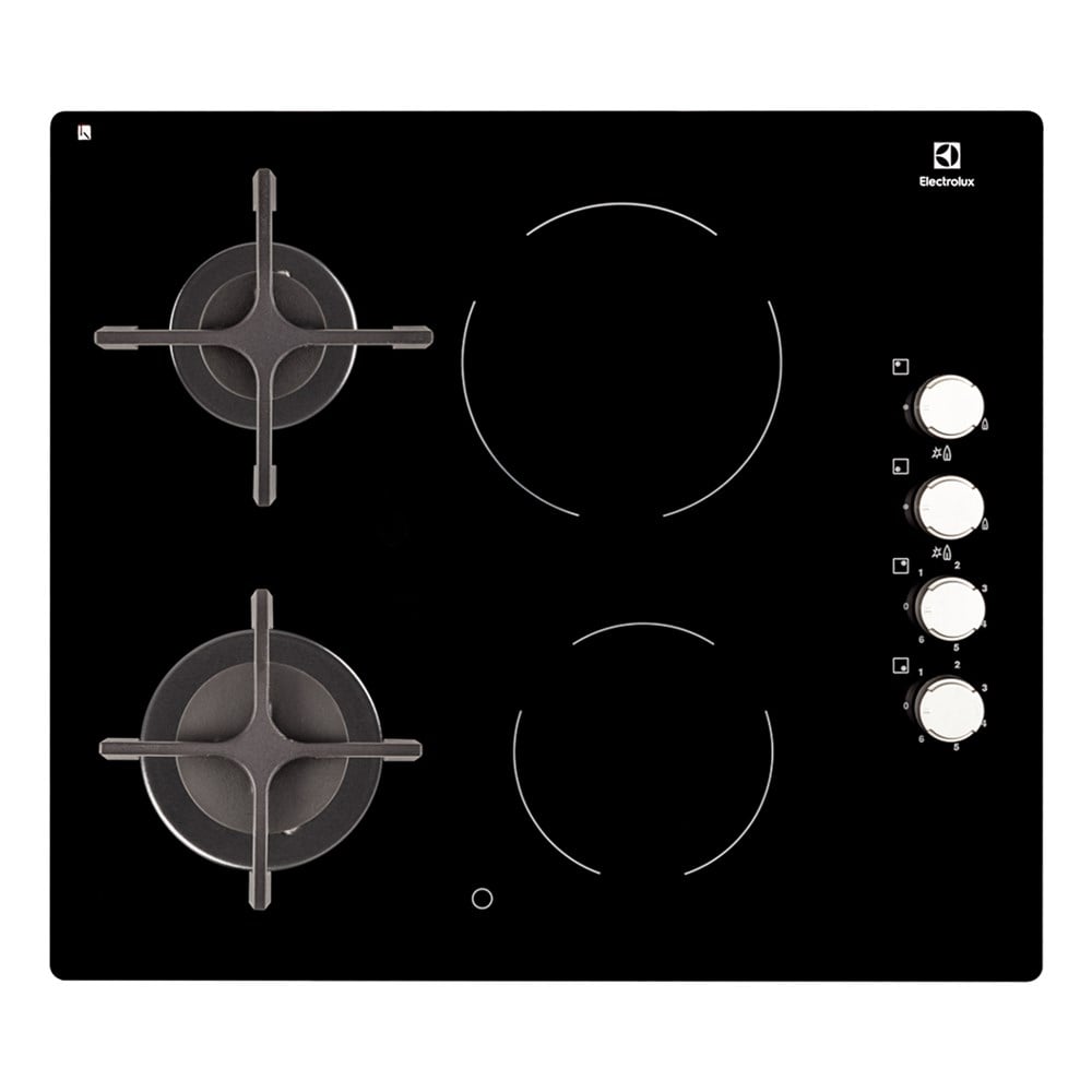 Hob Electrolux, 7600W, four programs, two gas fireplaces, two electric heatingplace, glass tempered, 55x47x4 cm