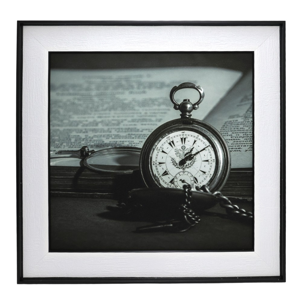 Printed picture, "Clock", MDF frame, black and white, 50x50 cm