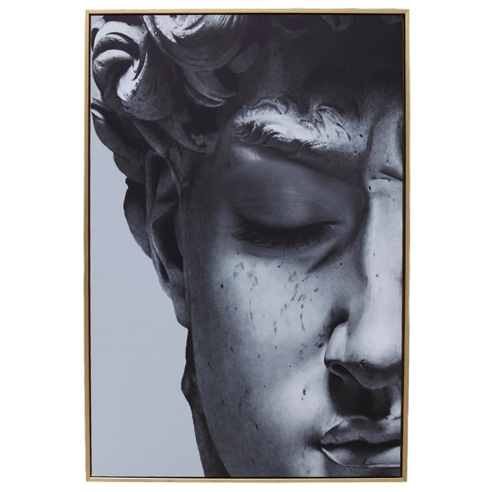 Hijeshija e skulpturave te romakëve të lashtë vjen e stilizuar në pikturën e printuar ''Face'' me një pamje sa klasike po aq edhe moderne. E kornizuar në material MDF kjo pikturë do i japë ambjentit tuaj një pamje elegante. Ideale për ambjentet e shtëpise si dhe të bareve apo restoranteve.
