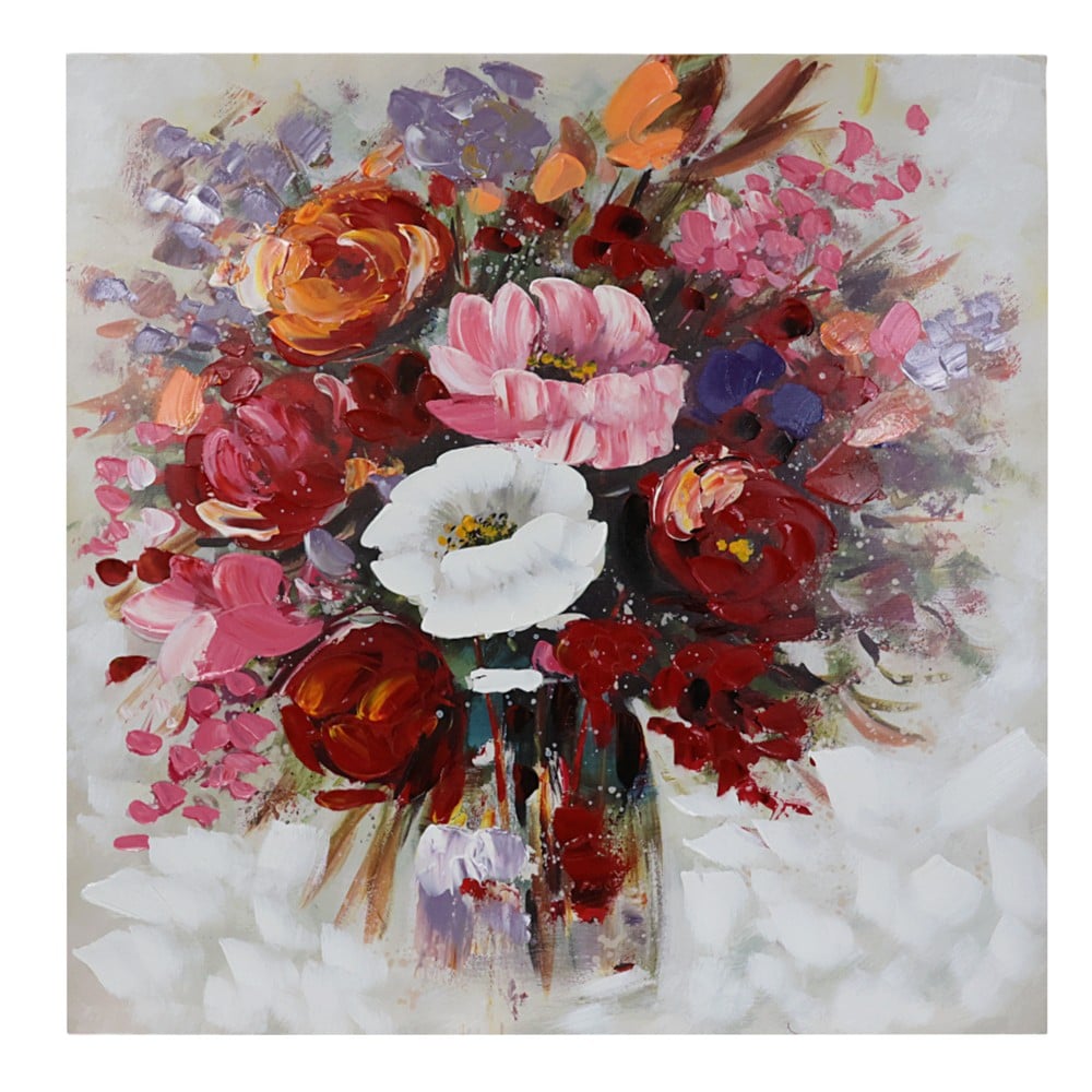 Zbukuroni muret tuaj me pikturën "Flower bouquet", një vepër shumëngjyrëshe në telajo me përmasa 80x80 cm që sjell në hapësirën tuaj energjinë dhe bukurinë e natyrës. Ky kompozim i gjallë dhe i pasur me nuanca të ndezura kap momentin e lulëzimit të luleve, duke krijuar një atmosferë freskie dhe vitaliteti. Me prekje delikate të furçës dhe kontraste harmonike, kjo pikturë fton shikuesin të ndalet dhe të përjetojë emocionet që përçon çdo petal dhe hije, duke e kthyer çdo ambient në një oaz ngjyrash dhe ndjesish