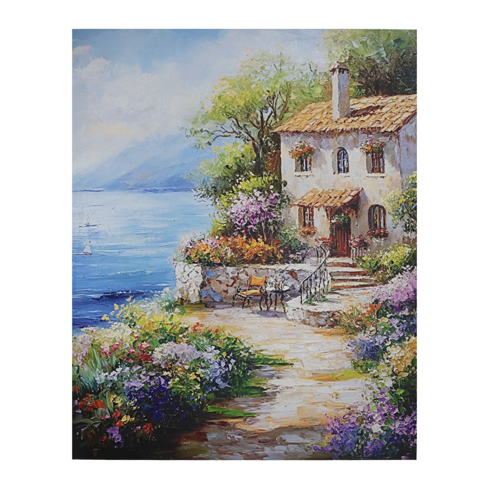 Pikturë, “Pretty Village”, me përmasa 80x100 cm, paraqet një skenë të një fshati të qetë dhe të bukur buzë bregut të detit. Shtëpitë me ngjyra të ndezura dhe natyra përreth krijojnë një atmosferë të ngrohtë dhe mikpritëse. Detajet e imëta dhe përdorimi i ngjyrave të ndezura e bëjnë këtë vepër të përshtatshme për çdo hapësirë që kërkon energji pozitive dhe një prekje natyrore e autentike. Kjo pikturë sjell një ndjesi harmonike dhe freski natyrore, duke e bërë çdo hapësirë më të gjallë.