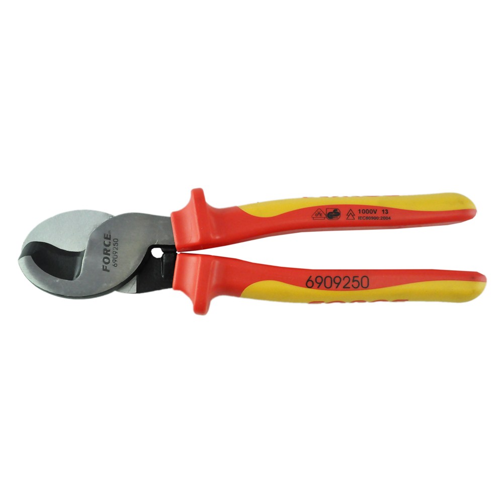 Pinca për prerje kabulli 250mm,e prodhuar nga nje material Cr-V (Krom-Vanadium),me tehe te forte e të trajtuara termikisht mund te përdoret për prerjen e kabellit elektrik.Me nje dorezë prej nje materiali qe duron nje tension deri ne 1000V dhe mjaft te rehateshme gjate punes.
