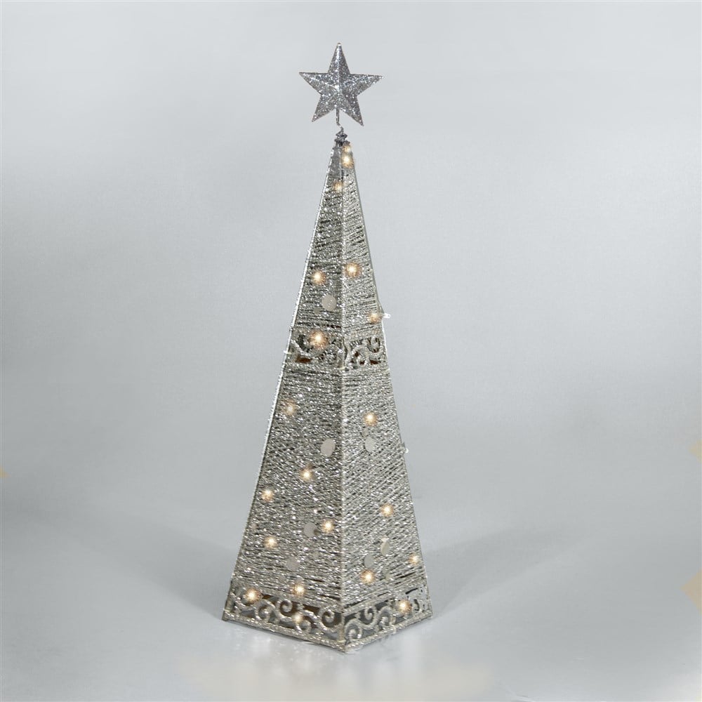 Piramidë dekorativ me drita LED, 3000 K, ngjyrë argjendi, IP44, H60 cm
