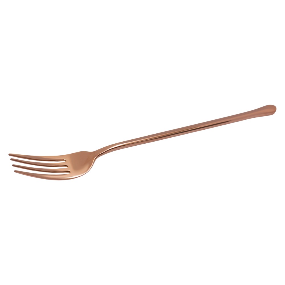 Ky pirun i mishit elegant është projektuar për të shtuar një prekje sofistikimi çdo vakti. Ngjyra e tij e bukur bakri e bën atë një pikë fokale në tryezë, ndërsa materiali i inoxit siguron qëndrueshmëri dhe lehtësi në pastrim. Me një gjatësi prej 21 cm, ai është perfekt për të prerë dhe ngrënë çdo lloj mishi.
