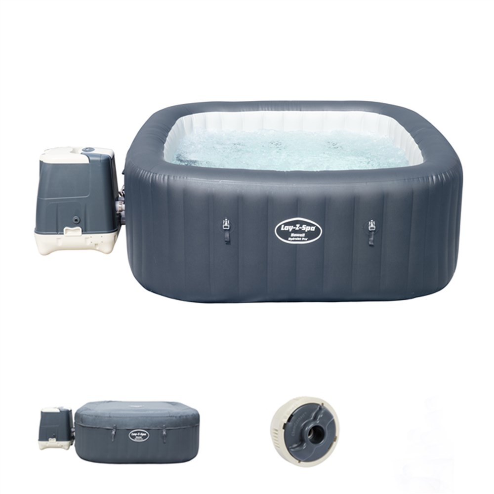 Pishina Lay-Z-Spa 1.80mx 1.80mx 71cm Hawaii. Zhytuni ne Spa-ne me flluckim te ngrohtë, për t'u çlodhur duke qendruar aty per një kohe të gjatë, sidomos kur ditet jane te vështira e te ledheshme! Sistemi qetësues i masazhit me uje siguron dy mënyra për tu çlodhur në banjën tuaj. Grykat e hidromasazhit rrethojnë muret e pishines për të lëshuar rrymat e programuara të ujit, dhe hapjet e e hidromasazhit lëshojnë flluska nga fundi i pishines për të krijuar një ambient te ngrohtë, me flluskë të nxehtë.Këto flluska qetësuese do t'ju ndihmojnë të relaksoheni dhe të lëshoheni mirë. Ndërtimi i qëndrueshëm i materialit te ketije hidromasazhi me fryrje, realizuar me material Tritech, të qëndrueshem, rezistencës ndaj perdorimeve, rezistente ndaj rrezeve ultravjollce UV për të parandaluar dëmtimin dhe për të ruajtur formën e saj pavarësisht se shumë herë mund te fryhet dhe shfryhet. Spa-ja Hawaii vjen me një mbulesë të përforcuar me kapse sigurie për izolim shtesë.Kjo pishine gjithashtu vjen me një pompë që e fryn, e ngroh, drejton filtrimin dhe kontrollon sistemin e masazhit, bashke me shperndaresin me vrimë nxjerrëse per te vendosur lendet kimike. Shpërndarësi mban ujë të pastër dhe të shëndetshëm duke siguruar një nivel të qëndrueshëm të klorit që shpërndahet në mënyrë të barabartë në të gjithë pishinen.