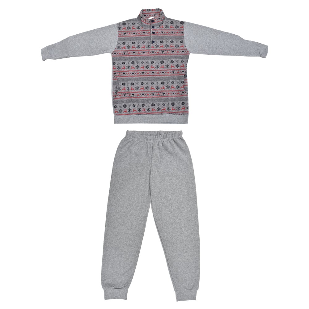 Pizhama me dizajn Christmas për djem, Diana, poliestër dhe pambuk, 6/XL, gri dhe e kuqe, 1 palë