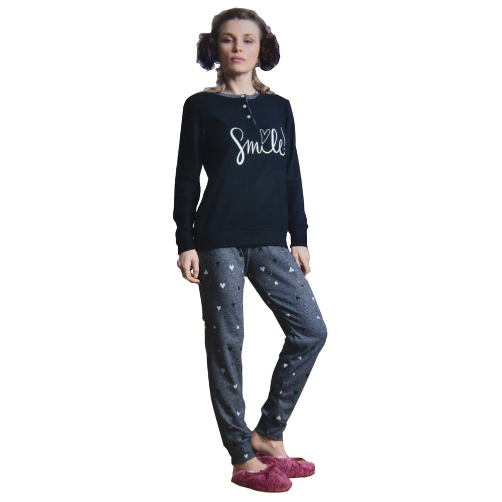 Pizhama për femra, Jacquard, Nottingham, poliestër dhe pambuk, S/2, blu, 1 palë