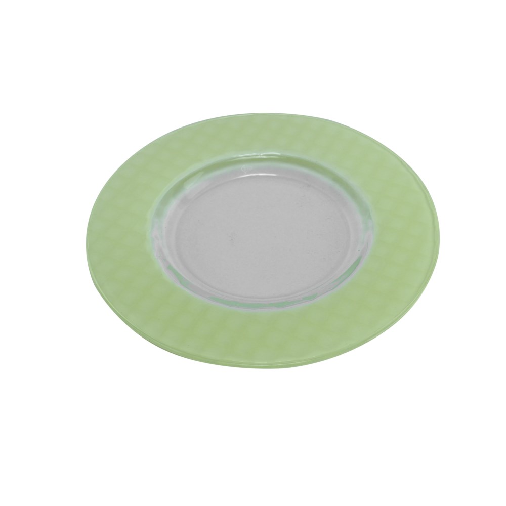 Servirni ne menyren e duhur embelsirat tuaja dhe jepini atmosferen duhur, rendesine e detajin e kendeshem e festiv diteve tuaja te shenuara permes setit prej kater pjatave "Bisanzio". Dekori ne te njejten material me pjaten, ne ngjyre te gjelbert konturon ne trajte bordure perimetrin rrethor te kesaj pjate. Materiali i plote i qelqit te plote e transparent ju lejon kombinime te shumellojeshme me mbulesa apo peceta me dekore, ngjyra apo nuanca te ndryshme per krijimin keshtu te nje kombinimi harmonik e estetik ne tryezat tuaja.