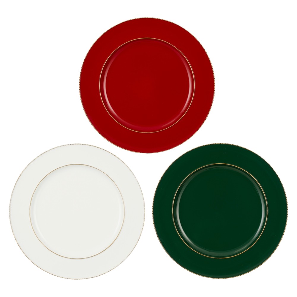 Pjatë dekoruese, prej materiali polipropileni, me diametër prej 33 cm dhe lartësi 2 cm, në ngjyrë të kuqe me xixa. Përdoret si një objekt dekorues për vendosjen e tasave të akulloreve, çokollatave dhe ushqimeve të tjera të thjeshta që serviren në festa të ndryshme. Ky produkt është i përshtatshëm për përdorim jo-profesional, në ambiente shtëpie, dhe për përdorim profesional, nga kompanitë e organizimit të eventeve. Pjata mund të pastrohet lehtësisht me një pecetë të lagur. Rekomandohet të mos vihet në kontakt me ushqimin, nuk lahet në lavastovilje dhe nuk përdoret në mikrovalë.