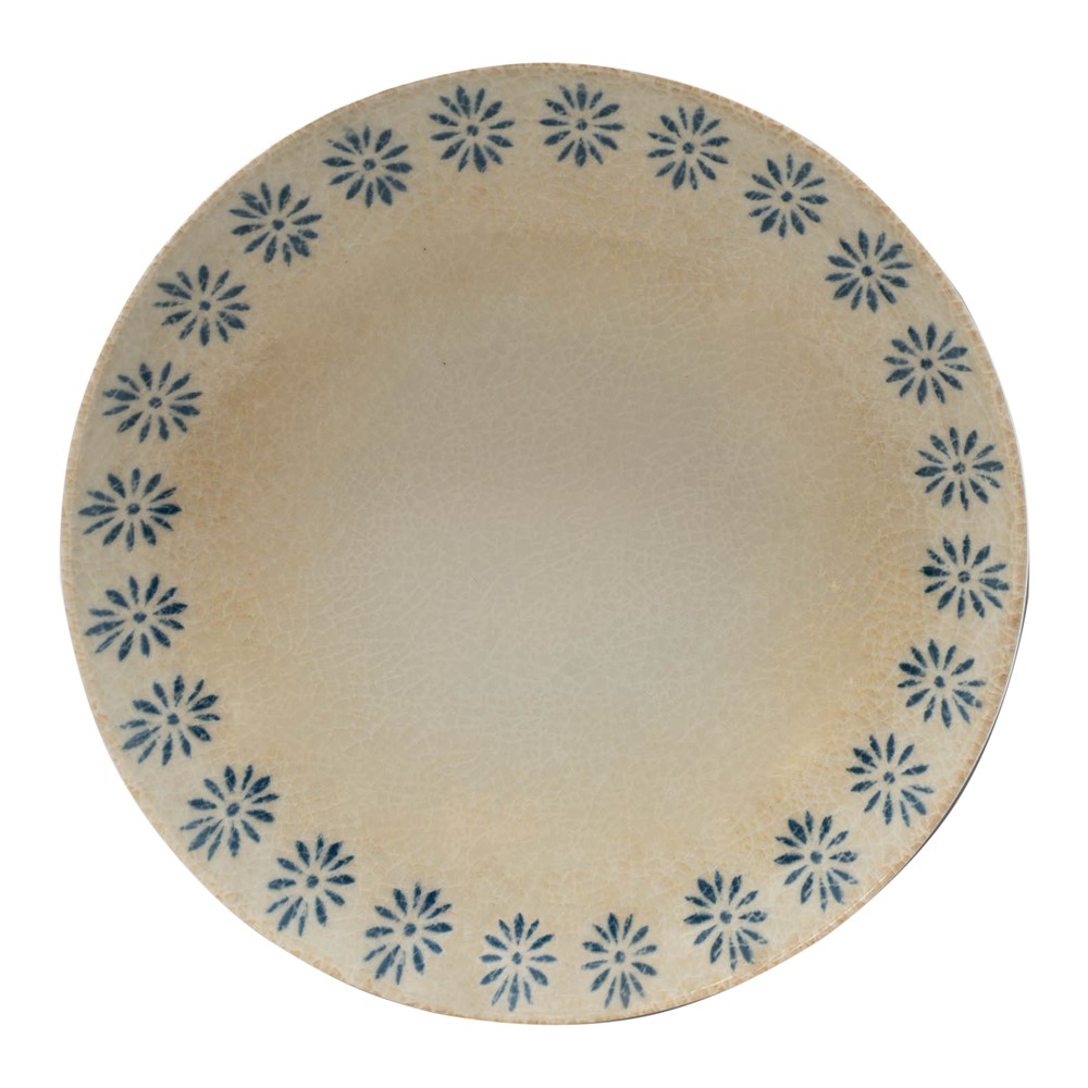 Pjatë e sheshtë Konos, porcelan, bezhë me dekor, Dia.28 cm