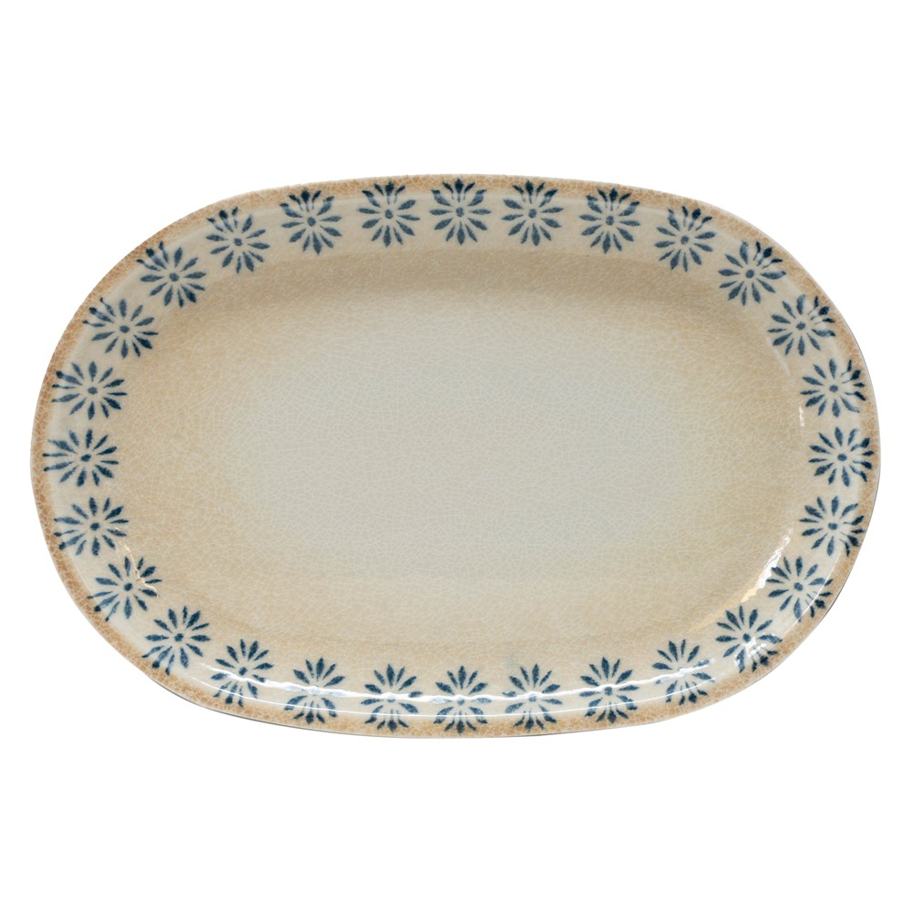 Pjatë ovale Roma, porcelan, bezhë me dekor, Dia.33 cm