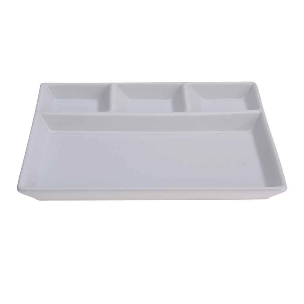 Pajtë për servirjen e ushqimeve të ndryshme, me 4 ndarje, ku 3 ndarje janë më të vogla.