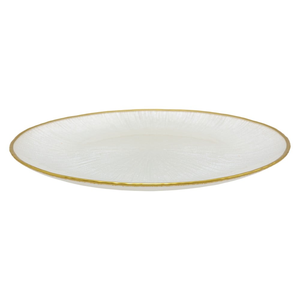 Pjatë servirje, qelqi, e bardhë me konturnë floriri, Dia. 32 cm