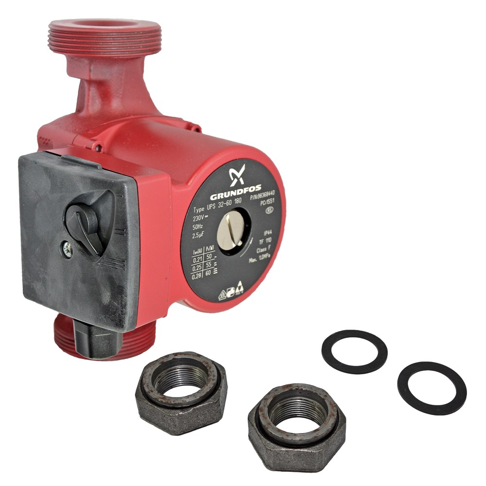 Pomp qarkulluese Grundfos, Ups 32-60 180 1x230V,H5.75m, 50W, kapaciteti 3.35m3/H, temperatura e ujt -25-95°C, Ø2", instalim Horizontal ose vertikal, permasat 12.6x14.1x18 cm