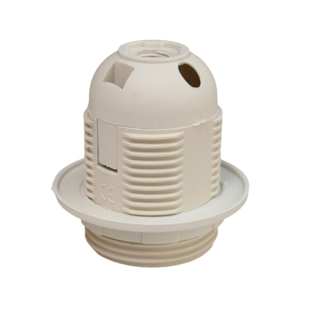 Portollambë plastik me bazë E27 dhe fileto, ngjyrë e bardhë. Dizajn me fileto për montim të lehtë dhe të sigurt të llampës, i përshtatshëm për përdorim në ambiente të ndryshme. Praktik dhe i qëndrueshëm.