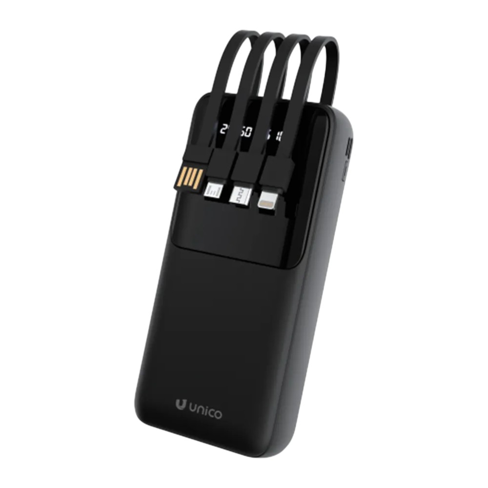 Powerbank 4 në 1, Unico, PB1703, 20000mAh, 10 W, fishë micro USB, Type-C, Lightning, ngjyrë e zezë
