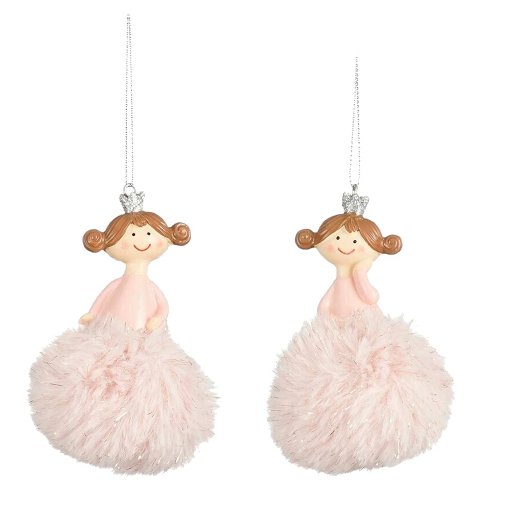 Princess Hanging Decoration, fur, pink / white, 5.5 cm