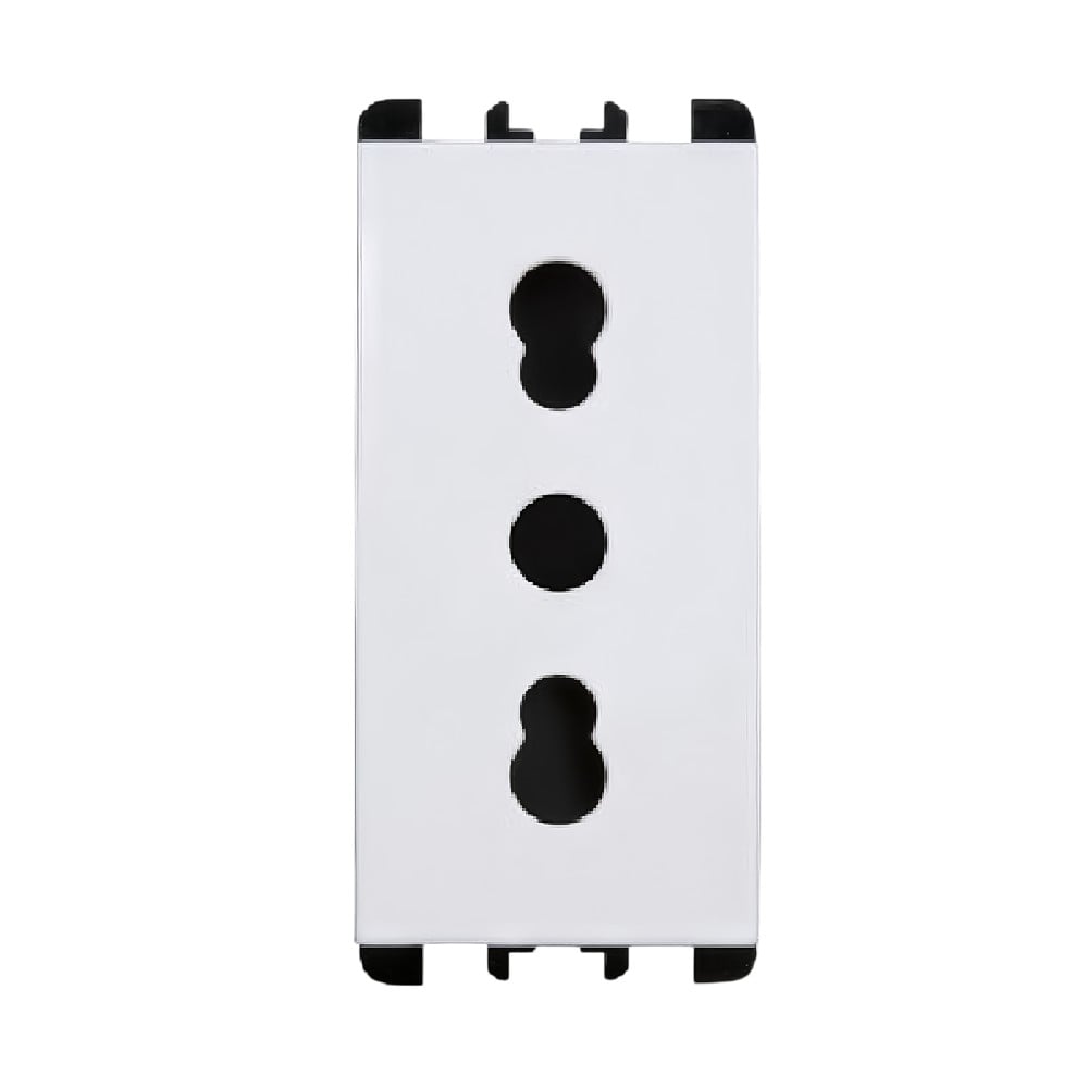 Prizë bivalente, 2-polëshe me tokëzim (2P+T), 16A, ngjyrë e bardhë, markë Simon Urmet. E dizajnuar për të pranuar si spina standard italian (10/16A) ashtu edhe spina Shuko, duke ofruar fleksibilitet maksimal në përdorim. Ideale për ambiente të përziera rezidenciale apo profesionale. Dizajn elegant dhe cilësi e lartë.