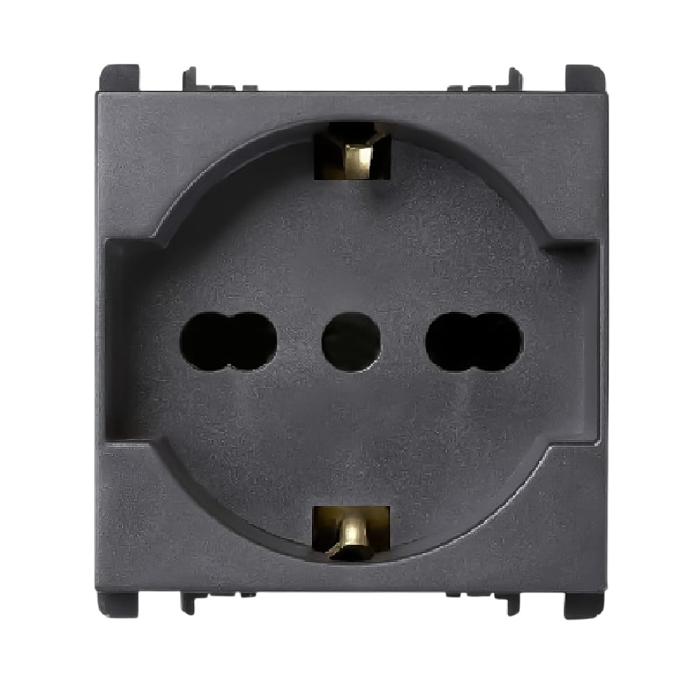 Prizë universale Shuko, 2-polëshe me tokëzim (2P+T), 16A, ngjyrë antracite, markë Simon Urmet. E përshtatshme për fiçat standarde europiane dhe ndërkombëtare, kjo prizë siguron një lidhje të qëndrueshme dhe të sigurt. Ngjyra antracite i jep një pamje moderne dhe elegante, duke u integruar lehtësisht në çdo ambient shtëpiak ose komercial. Ideal për përdorim në hapësira të ndryshme.