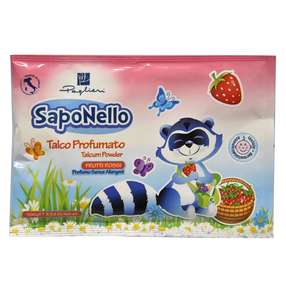 Pudër me përmbajtje talku për fëmijë, Saponello, Paglieri, plastikë, 100 g, e kuqe dhe blu, 1 copë