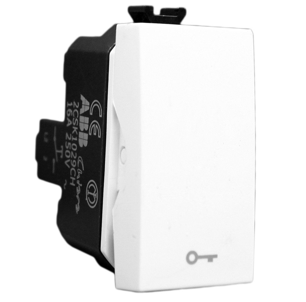 Shtojini hijeshi, elegancë dhe cilësi instalimeve tuaja me produktet ABB. Gama e gjerë e produkteve ABB ju ofron këtë çelës pulsant 16A me cilësi dhe rezistencë të lartë. Ai mund të përdoret për të komanduar hapjen e derës duke qenë se është lehtësisht i dallueshëm nga simboli i çelësit. Ngjyra e bardhë ju ofron komoditetin e kombinimit me çdo ngjyrë kapaku.