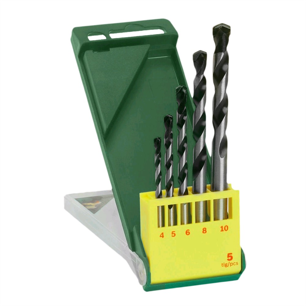 Punto betoni set 4-10mm 5pc. Puntot ofronjne jetëgjatësi operacionale dhe shpim më të shpejtë në beton . Jane shume rezistente ne perkulje. Ato mund të përdoret në shpim dhe goditje. Eshtë e përshtatshme për Trapan me goditje deri në 1000W dhe Trapanët me mandrino me shtrëngim. Te përshtatshme për shpime në beton, gure dhe pllake. Seti perfshin: 4; 5; 6; 8; 10 mm