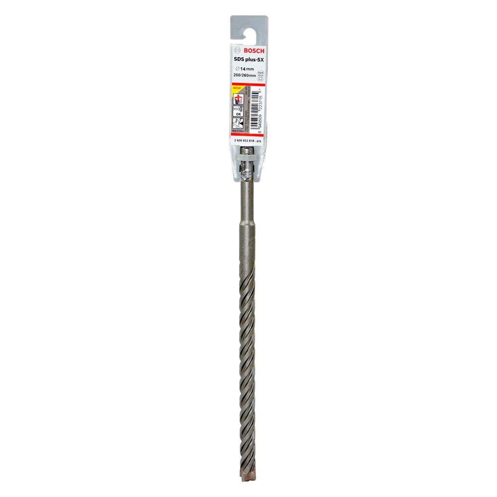 Punto betoni SDS-Plus-5X, 14x200x260mm performance e mire dhe e qëndrueshme gjatë shpimit në beton dhe materialet e tjera të ndertimit. Projektimi me majë në forme pllake mundeson shpimin dhe largimin e shpejtë të pluhurit.