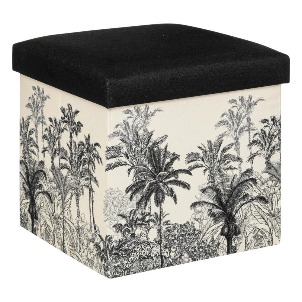 Pupë në ngjyrë të bardhë me detaje të zeza dhe dizajn tropikal. Është bërë nga pëlhurë poliester dhe mdf. Mbushja e brendshme është bërë me shkumë poliuretani. Në pjesën e poshtme ka një hapësirë ruajtjeje ideale për vendosjen e sendeve të vogla. Pupë ideale që do të sigurojë një vend shtesë në hapësirën tuaj dhe një vend për të fshehur gjërat.