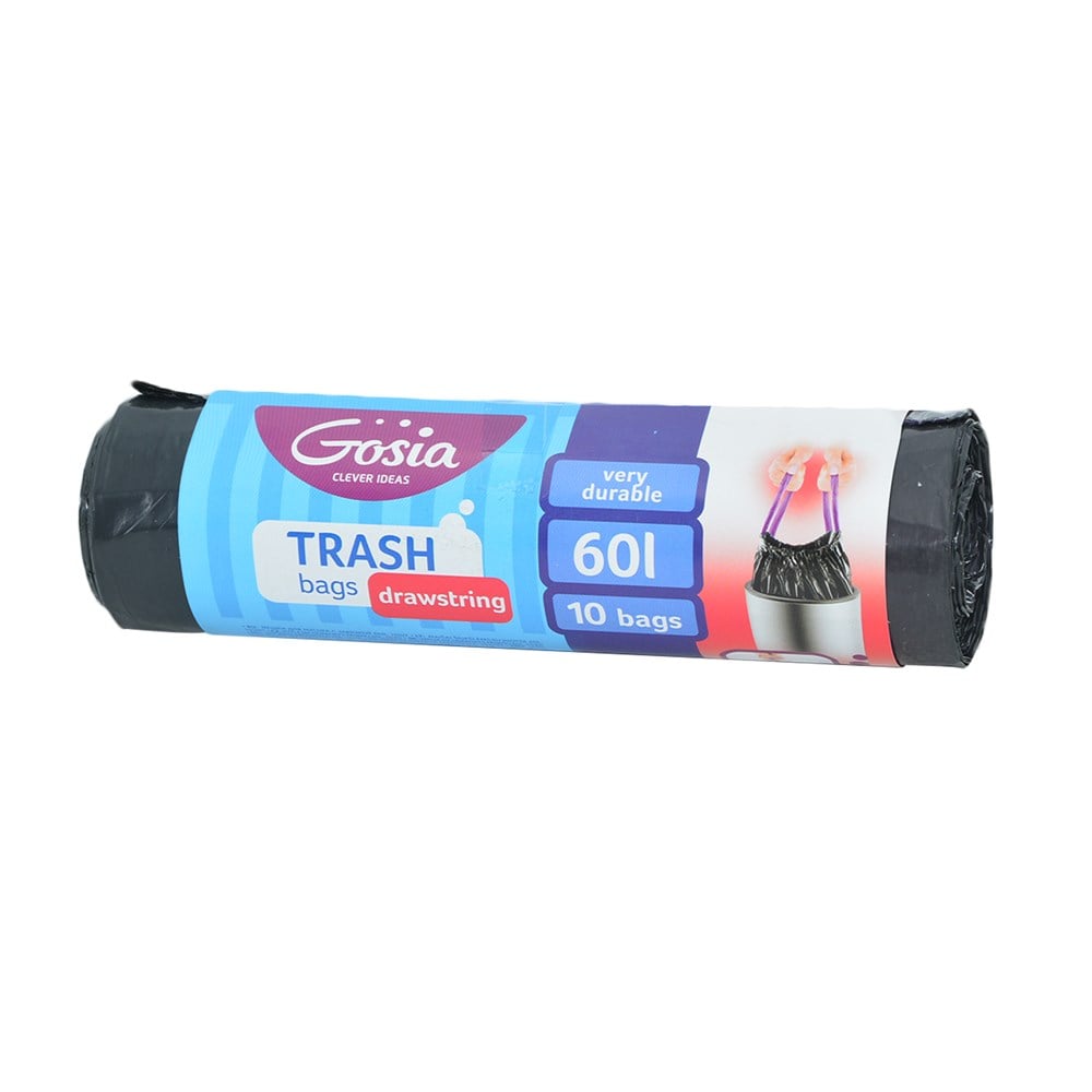 Qese mbeturinash, Gosia, plastike, 60 lt, 53x65 cm, e zezë, 10 ndarje, me litar, 1 copë