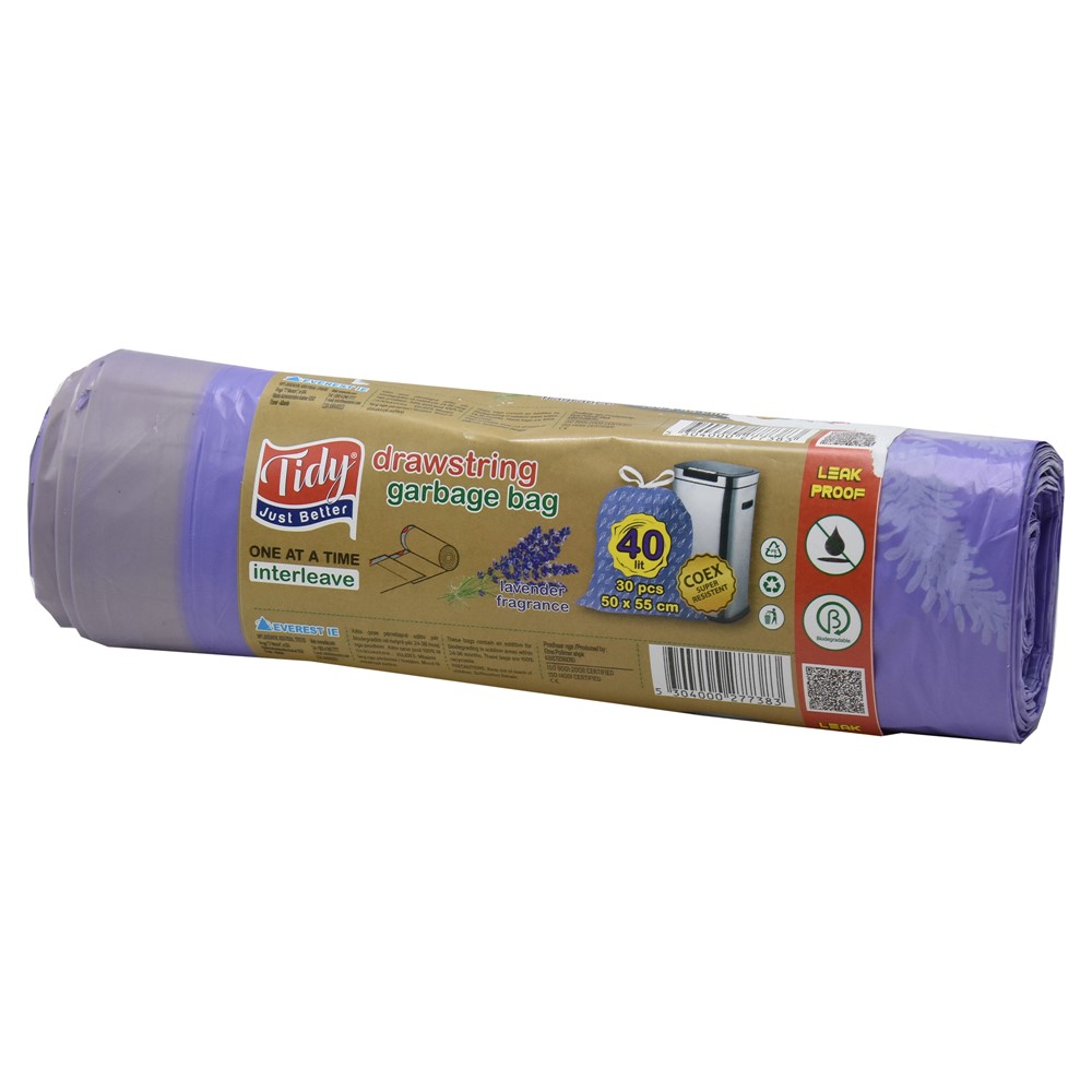 Qese mbeturinash, Tidy, 30 fije, lejla, 40 lt