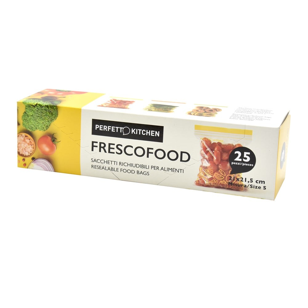 Qese për ruajtje ushqimesh, në madhësinë S, prej materiali plastik, me përmasa 21x21.5 cm, në ngjyrë transparente. Qesja është e pajisur me mbyllje hermetike dhe materiali përbërës ka veti higjienike dhe antibakteriale. Përdoret për ruajtjen në frigorifer të ushqimeve të ndryshme, duke ruajtur vetitë dhe shijen e ushqimit dhe duke parandaluar krijimin e aromave të pakëndshme. Ky produkt është i përshtatshëm për përdorim në ambiente shtëpie apo për ruajtjen e përbërësve të ndryshëm në kuzhina profesionale.