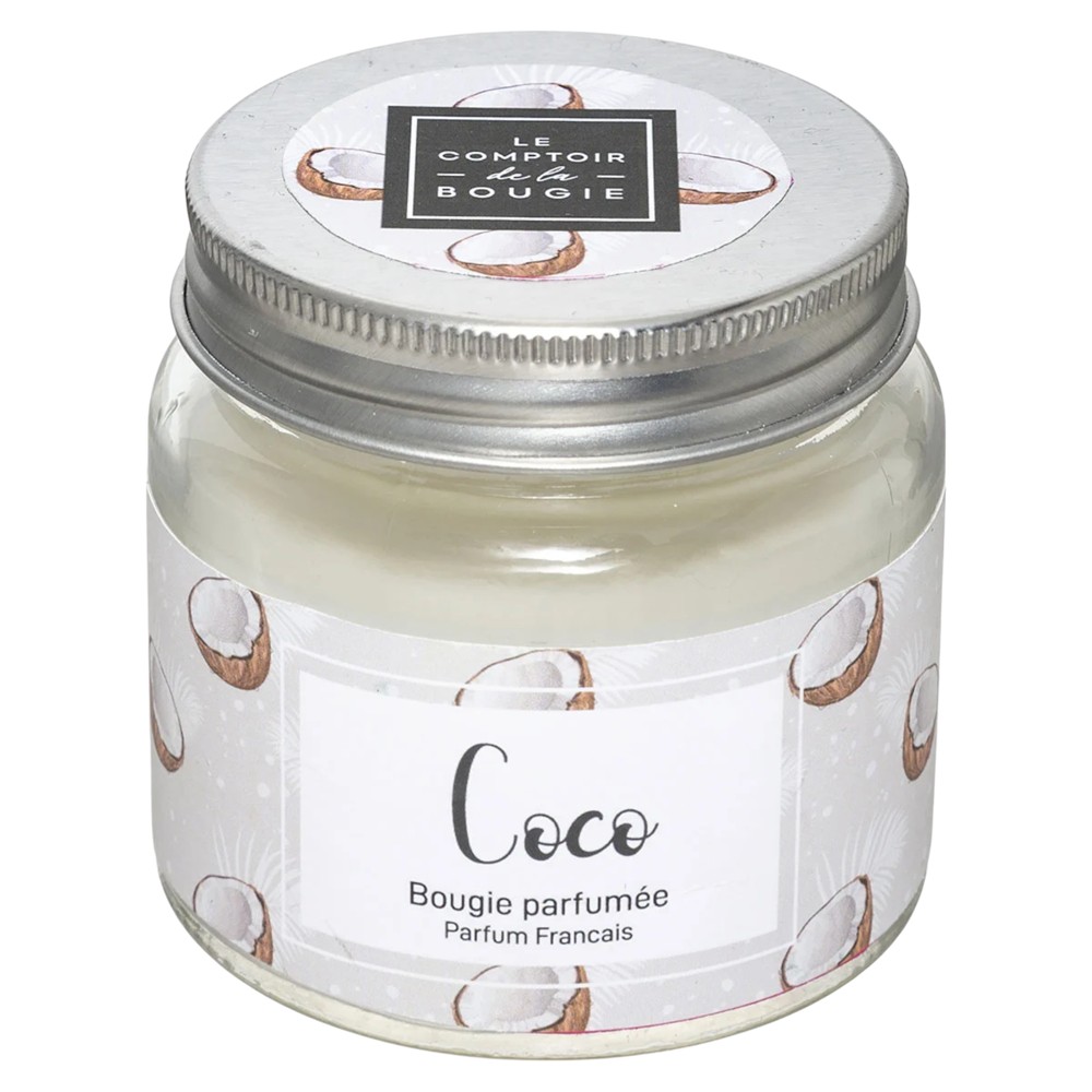 Po vlerësoni:Qiri aromatik me mbajtese qelqi, arome kokosi, ngjyre e badhe, 65 gr