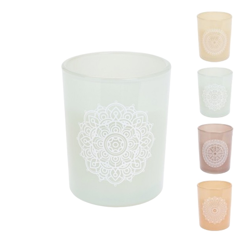 Po vlerësoni:Qiri aromatik me mbajtese qelqi, arome Sugar Mint/Tiger lily/levander/trendafil, ngjyra te ndryshme, 8x8x10 cm