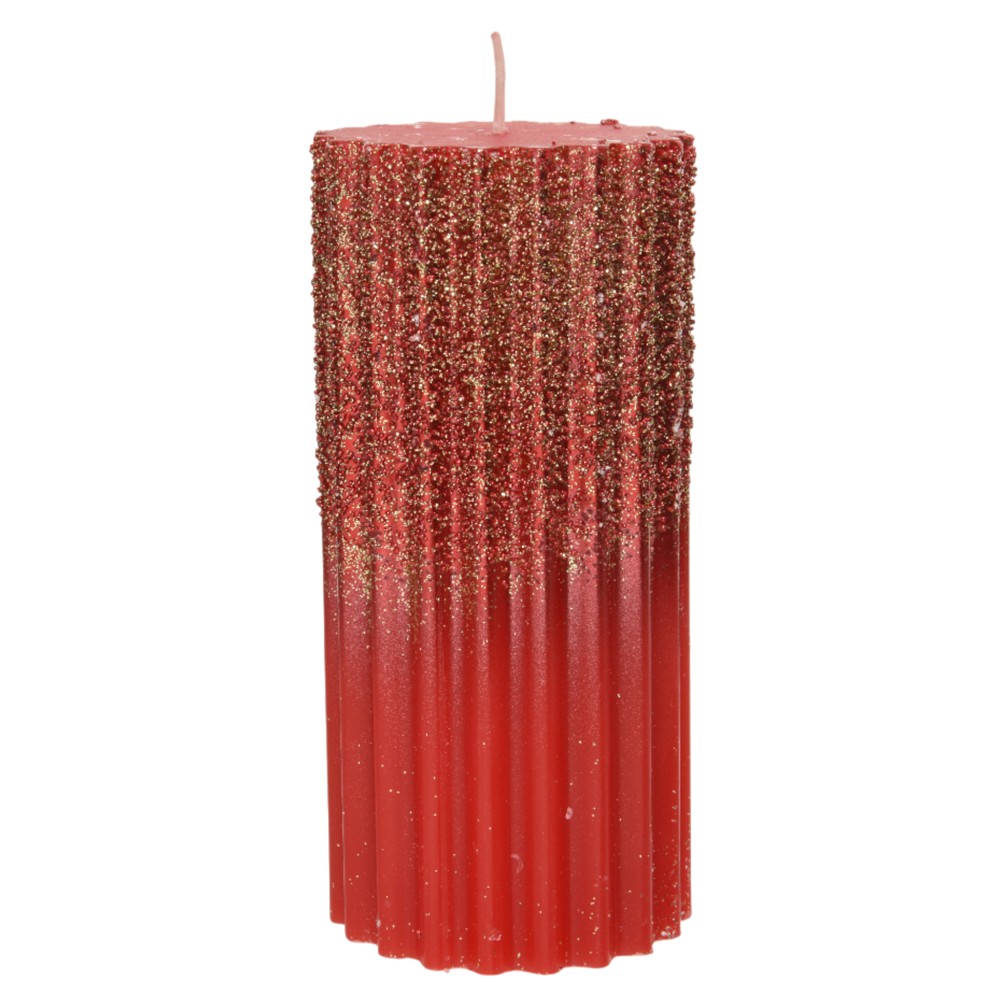 Po vlerësoni:Qiri dekorativ me motive Christmas, ngjyre e kuqe me gliter, D7xH15 cm