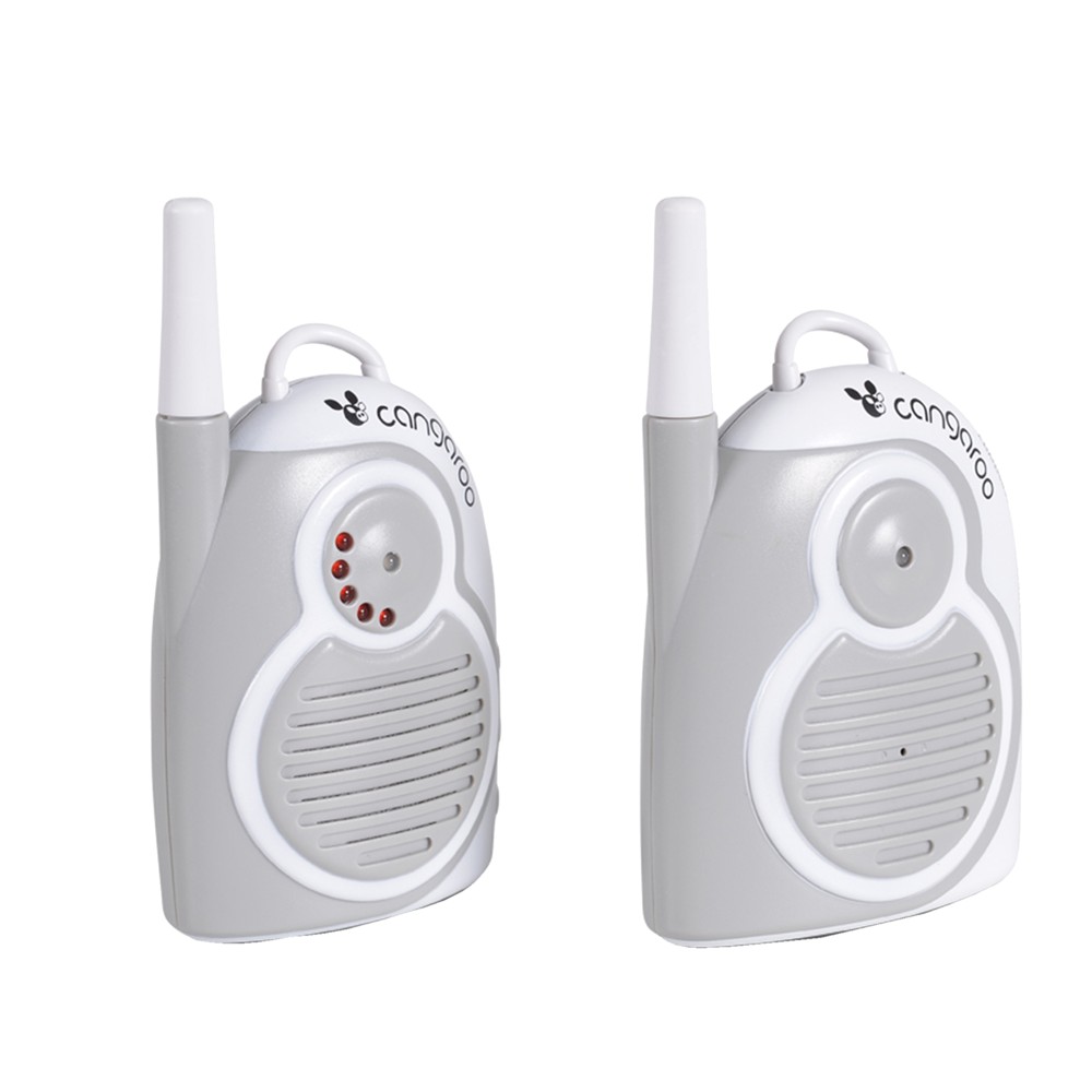 Radio monitoruese për bebe, Cangaroo, në ngjyrë bezhë ose gri. Kjo radio monitoruese është një aksesor tepër praktik dhe ndihmues për nënat në mënyrë që të mbajnë fëmijën të monitoruar gjatë kohës së gjumit. Ky produkt të jep mundësinë e dëgjimit të pastër deri në 1.3 km në hapësirë të hapur. Gjithashtu ka aktivizues të zërit, tregues të baterisë së ulur, kontroll të volumit, dhe dy kanale me frekuencë 446 MHz - 434 MHz. Funksionon me fishën elektrike 220-240 V e cila ndodhet në paketim ose me bateri 3AAA x 15 të cilat nuk përfshihen në paketim.