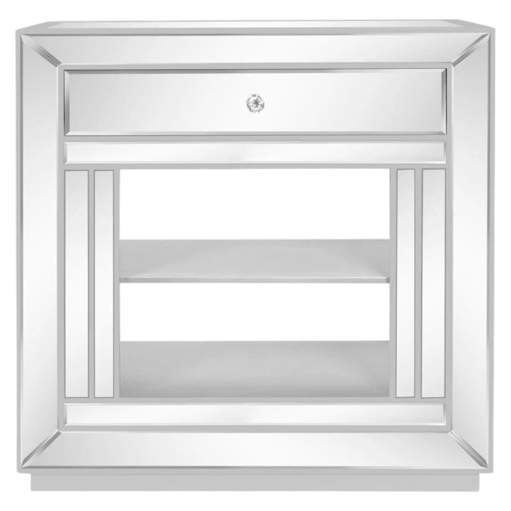Raft dhe ekspozitor, Senta, mdf/xham, argjend, 101x35xH101 cm