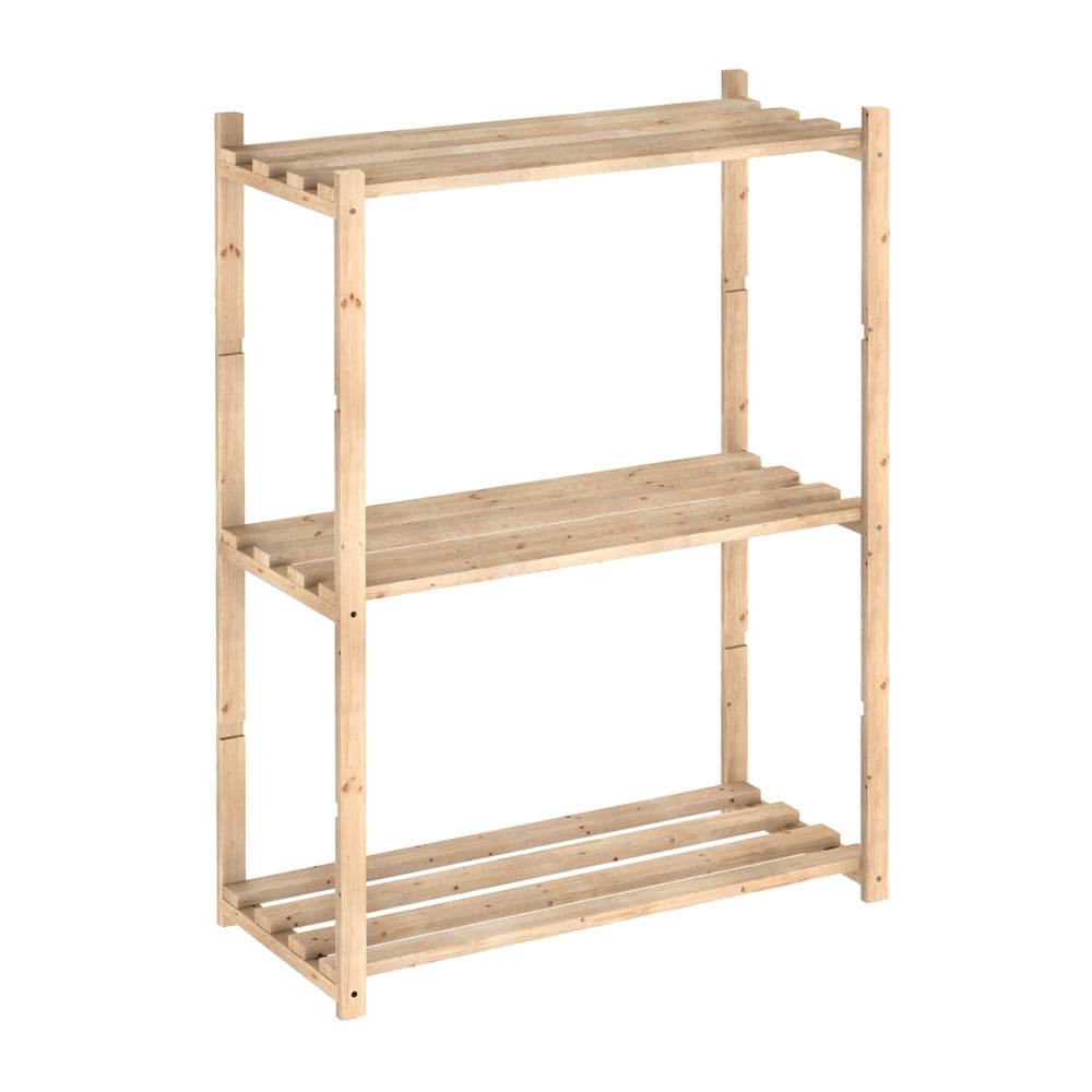 Solid Pine wood 3 shelves Serie Natura, width 65, deepth 30 cm, shelves adjustable in height, 92.2 x 30 x 65 cm