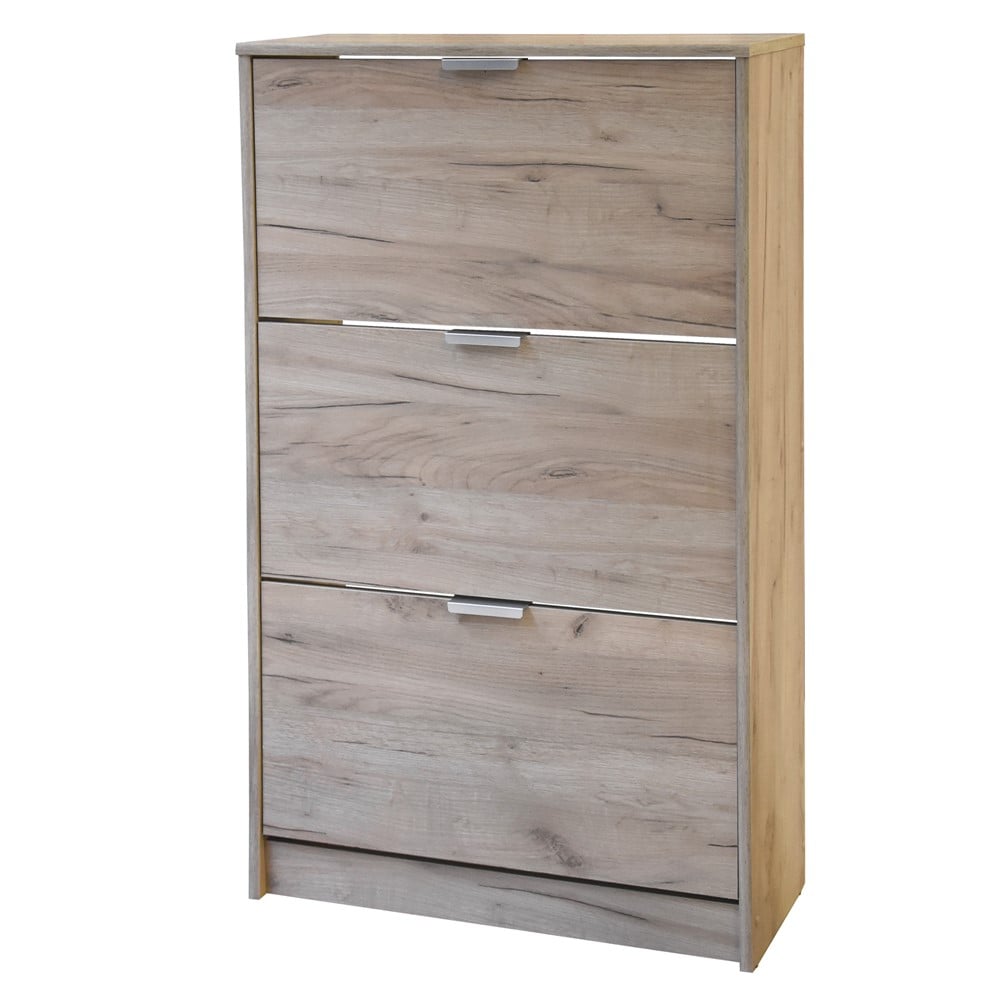 Rafti i këpucëve HUGO, me modelin e tij të lisit gri, ka 6 segmente në të cilat mund të mbani këpucët tuaja sezonale, dhe falë dimensioneve të saj dhe dy grupe rafteve, është një zgjidhje funksionale shumë efektive për dekorimin e korridorit tuaj me dimensione më modeste.