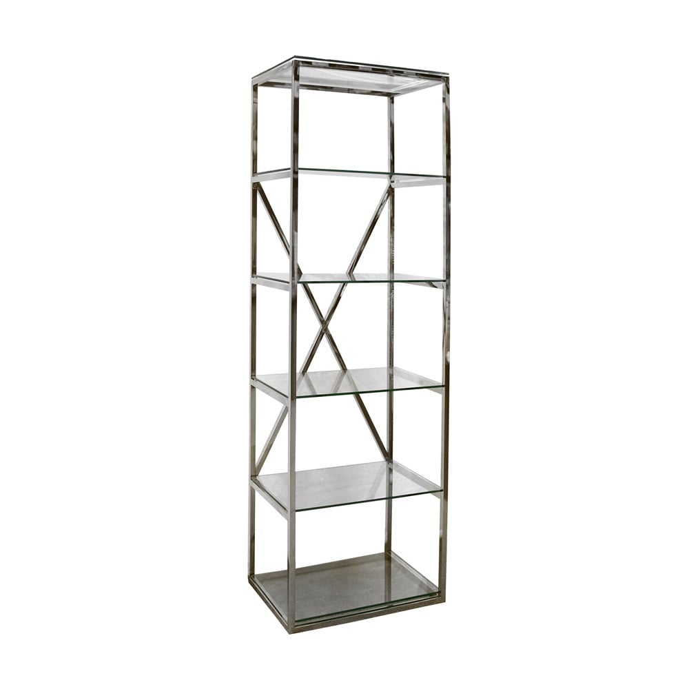 Po vlerësoni:Raft librash, strukturë inoksi (argjendi), xham temperuar 8 mm, transparent, 60x40xH180 cm